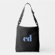 En svart bakgrund för klassisk chic. Anpassa och lägg till din monogram initialer skriven med ljusblått block brev. Modern, trendig och enkel.