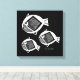 Bläck teckning av tre styliserade fiskar. VITE BLÄCK PÅ BLACK ELLER MÖRK FÄRGAD CANVAS. Inspinerad av gammal potteridesign och sten-konst ritade jag inte den här fisken realistiskt, utan tolkningsmässigt. Av TRFORSMAN.