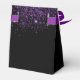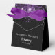 En svart bakgrund i snyggten som dekoreras med lila faux-gnistor. Med texten: Bröllop och Tack skrivet med ett modernt handskript i stil. Anpassa och lägg till namn och datum.