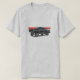 Tolkning av en svart Chevy gasser 1957 med röda randar bak den på den kulöra skjortan.