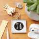 Svarten #74 cirklar fyrkantig silverfärgad nyckelring