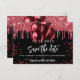 Ett girigt och trendig Spara datum för en Quinceñera, 15:e födelsedagsfesten. En svart bakgrund med röd faux glitter och ballonger. Anpassa och lägg till datum och namn/ålder. Texten: Spara datumet skrivs med ett stort trendig-handskript i stil.