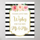 Lämna önskemål för den nye herr.. Och fru skriver för bröllop i svart och vitt rand mönster, glamorös guld vintage ram, rosa och persiko-vintage blommor och handskriven stil text.