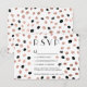 Ett originellt, modernt faux-folie ro guld och ett svart vattenfärgkort hand plockade polka dots osa bröllop på vit anpassade. Perfekt för elegant, chic och moderna bröllop-teman