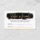 Chic salon refererar till ett vänkort med modernt skript, guld-effekter och svart vattenfärgbakgrund. Det här lyxiga hänskjutningskortet för skönhet innehåller utrymme för din erbjudna återföringsrabatt och kundens namn. Skapa moderna lash-, brow- eller nagel-diskonteringskort med den elegant skönheten pub kärlek.