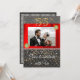 Inbjudan till chic Black och Guld med rött silke ger ett foto av paret. Utformningen har guld konetti, ett svart vävt mönster med ett unikt guld och glitter-nummer.