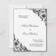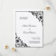 Spara datumkorten genom att göra ditt stora meddelande med den här eleganten. Texten är angiven i klassiska teckensnitt med dekorerade rullor. Det här är platta kort och de komar med matchande kuvert.