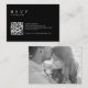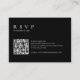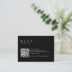Modern QR-kod Bröllop Mini-OSA kort med enkel, minimalistisk layout med din QR-kod och instruktionerna bredvid i lämnat justering. Baksidan har ditt favoritfoto. All text är vit över en svart bakgrund och kan ändras till valfri färg i designredigeringsverktyget i verktyg.