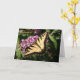 Denna vackra design visar en närbild på en svart svärmfjäril på en purpur buske med orden "Tänker på dig" i typsnittet script. Den inre hälsningen lyder "Hoppas det gör din dag lite ljusare när du vet hur mycket andra bryr sig". Du kan ändra orden till vad du vill. Om du behöver hjälp med anpassning, vänligen maila mig på zazzlevibes@gmail.com. Besök vår butik www.zazzle.com/Naturosity för fler unika produkter. Tack, Karen (foto av Karen Hall©)