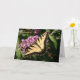 Denna vackra design visar en närbild på en svart svärmfjäril på en purpur buske med orden "Tänker på dig" i typsnittet script. Den inre hälsningen lyder "Hoppas det gör din dag lite ljusare när du vet hur mycket andra bryr sig". Du kan ändra orden till vad du vill. Om du behöver hjälp med anpassning, vänligen maila mig på zazzlevibes@gmail.com. Besök vår butik www.zazzle.com/Naturosity för fler unika produkter. Tack, Karen (foto av Karen Hall©)