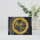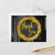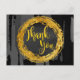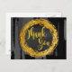 Ett vackert guld brev som säger tack på ett svartvitt postkort är mycket elegant och klassiskt att tacka dina gäster.
