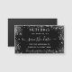 En trendig bröllop spara datum magnet. Snyggtens svarta bakgrund. Dekorerad med faux silver glitter-gnistor. Anpassa och lägg till ett datum, ställe och namn. Spara datum skrivs med ett modernt handskript i stil med dekortecken.