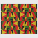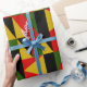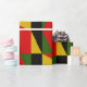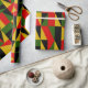 Den här pappra inslagningen har en svart historikdesign av trianglar och rektanglar i guld, rött, grönt och svart skapar ett mönster.