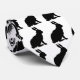 Denna nacke är vit med en upprepad bild av biprofilen för en kanin i sitta i svart silhuett.