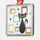 Färgfull illustration av Mid Century stil med svart katt, svarta stjärnor och färgstarka kuber dekoration på vit bakgrund. Du kan lägga till ditt namn/monogram för att anpassa objektet.