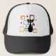 Färgfull illustration av Mid Century stil med svart katt, svarta stjärnor och färgstarka kuber dekoration på vit bakgrund. Du kan lägga till ditt namn/monogram för att anpassa objektet.
