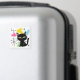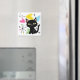 Färgfull illustration av Mid Century stil med svart katt, svarta stjärnor och färgfulla geometriska former dekoration på vit bakgrund