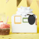 Färgfull illustration av Mid Century stil med svart katt, svarta stjärnor och färgstarka kuber dekoration på vit bakgrund. Du kan lägga till ditt namn/monogram för att anpassa objektet.