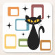 Färgfull illustration av Mid Century stil med svart katt, svarta stjärnor och färgstarka kuber dekoration på vit bakgrund. Du kan lägga till ditt namn/monogram för att anpassa objektet.