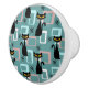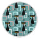 Färgfull abstrakt Mid Century stil mönster med svart katt, svarta stjärnor och färgade (blått, vitt, rosa) kuber dekoration på turkobakgrunden för varje kattälskare, kattälskare, mamma och katt pappa.