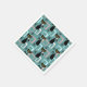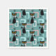 Färgfull abstrakt Mid Century stil mönster med svart katt, svarta stjärnor och färgade (blått, vitt, rosa) kuber dekoration på turkobakgrunden för varje kattälskare, kattälskare, mamma och katt pappa.