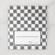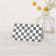Dessa platskort är redo för dig att skriva in namnet på din gäst(er) och deras bordnummer. Den vita rutan med en svart ram för att skriva in din information står mot en svart-vit rutig bakgrund med svarta rutor med ett målat utseende och enfärgade vita rutor som utgör rutmönstret.