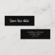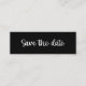 Svartminimalt bokmärkskort för Bröllop spara datum Mini Visitkort