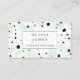 Ett modernt, svart polka-punkt och grönt vattenfärg stänk-temat affärskort. Anpassa genom att lägga till din fullt- och kontaktinformation på baksidan.