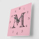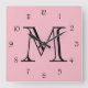 Svartsiffriga Monogram-skript på Rosa, fönster Fyrkantig Klocka
