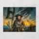 En kraftfull målad porträtt av Svartskägg stående framför sitt fartyg i en våldsam storm, som fångar intensiteten och myten kring den ökända piraten. Perfekt för samlingar av maritim konst, historieentusiaster och dramatisk väggdekor.