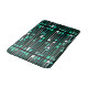 Ett mellanliggande mönster på 1950-talet vintage stil-konst har enkla geometriska former av breda rektanglar. många skuggor av teal, turkos och akvamarin mot svart bakgrund.