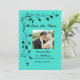 Det här inbjudan "Spara datum"-kortet innehåller svarta blommor och löv på vinerna - ett hörn i blommigten ram på framsidan och en blomma vinrankor mönster på baksidan. En turkos färg #40E0D0 har lagts till för färg i bakgrunden. Om du vill ändra det här färg öppnar du "Färg i tryckt bakgrund". Klicka sedan på "Avancerat" till Hex Färg. Skriv bara in siffran eller klicka på en skugga av rosa, gult eller något annat färg. Ändra storlek, rotera och annan redigering som är tillgänglig för den här blomstervinbilden. Byt ut fotot mot ditt eget.