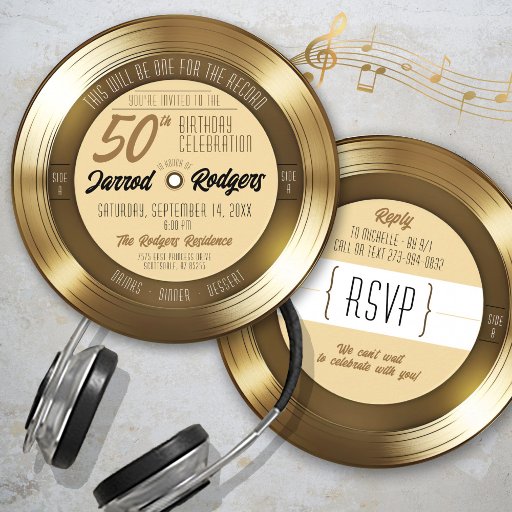 Det här unika och retro Solid Guld & Black Vinyl Record Player-musiktemat 50:e födelsedagsfesten 7x5 med den centrala sång-titel som citerar "this will be the Record" och typografiinformation om roligten, har en dubbla-sidig 70:s solida guld-postervideo ("Side A / Side B") med inbjudningsinformation på framsidan och OSA på baksidan. Anpassa enkelt ordalydelsen till party för att fira din fab 50-åring! Du kanske vill redigera placeringen av dina ordningskomponenter ytterligare gången du lägger till dina uppgifter. Om du vill göra det klickar du på knappen "Redigera med design verktyg" grund i fönstret "Personalize", navigerar till fliken "lagrar" i den lämnat handkolumnen i skärm, markerar framsidan eller baksidan av lagrar och klickar sedan på den lagrar inslag som du vill ändra och gör den till en egen. ** Rulla nedan om du vill checka ut den fullt som matchar designsamlingen för att slutföra din 50:e födelsedagsfest! Rullan nedan om du vill se samlingen, eller gå till min Zazzle-storefront och visa samlingen i dess helhet där. ♥ Anpassad design/produktförfrågningar och mallfrågor är alltid välkomna - klicka på knappen "meddelande" eller e-post figandlilyco@gmail.com. Konstruktionen skapas av Fig och Lily Studios, med välsignelser och tack!