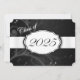 Svart och vit studentfest med ljus och mörk svart blommigt och ett vitt band som visar studenten. Kortets baksida är svart med vitt teckensnitt som personer kan fylla i studentfestens inbjudningar.
