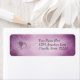 En svartkonsveva sitter i en vit webben mot en lila bakgrund.