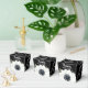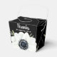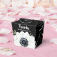 Uttagna förinställningsrutor har elegant vattenfärgsvit och svart anemonblomma och löv på en svart bakgrundsruta med ditt personliga tack till framsidan och namn på grund. MATCHING-objekt i vår samling.