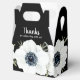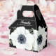 Rutorna för säljbar stil har vattenfärgsvit och svart anemonblommor och löv som figurerar runt sidorna av den svarta bakgrundsrutan med ditt personliga tack för att du sa det på ena sidan och namn på den andra. MATCHING-objekt i vår samling.