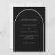 En inbjudan från elegant bröllop. En svart bakgrund med en båge på framsidan.