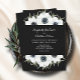 En elegant av svartvita anemonblommor och löv mot svart bakgrund, dina bröllop-ceremonier i chic med vita bokstäver på framsidan och dina bröllop-detaljer finns på baksidan av allt detta i en enda inbjudan. MATCHING-objekt i vår butik.