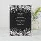En roligt svartvit bröllopsinbjudan på en svart bakgrund och lätt grått-text.