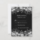 Ett svarskort för roligt svart och vitt bröllop bröllop på svart bakgrund och lätt grått. En svart och vit blommigt gräns omger den här inbjudningens övre och nedre del. Detta är en del av en svit med matchande produkter.