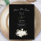 Spara datum meddelande har en svart bakgrund med en guld och vit fetstilt blommigt. Det är helt enkelt elegant!