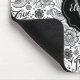 En svart och vit monogrammusmatta i klass dekorerad med ett kalligrafiskt blommönster. En elegant- och chic-utformning. Anpassa den till din dator med ditt namn och inledande namn. Designad av Blackberry Boulevard.