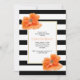 Svarta och vita rand mönster och korallvallmoblommor, bröllop, inbjudan till repetitionsmiddag. Den här moderna och chic bröllop-designen är perfekt för din vår eller sommarrepetitionsmiddag.