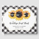 Komplettera bröllopsfesten Rustic land, bakgård, trädgård eller ladugård med den svarta och vita buffelplattan i blommigt bröllop gäst bok med solblommor och ljus på en svart och vit bakgrund. Matchande objekt är tillgängliga.