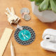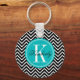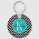 Svartvit Chevron med Teal Monogram Nyckelring