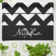 Svart och vit Chevron Monogram kökshandduk. Anpassa med ditt namn och initialer.