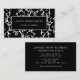 Ett slå svartvitt blom- damastast mönster skapar en elegant gräns på denna moderna stilvisitkortmall. Detta tvåsidiga kort har att ta prov text på bekläda och baksida i vit på en svart bakgrund för att dig ska personifiera med din egna namn och information om affär. Perfekt för gifta sig och händelseplanners såväl som andra affärsprofessioneller.