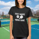 För en svart/mörk t-shirt. För Pickleball-spelare. Offert: Fast Händer, Brödspel. Vit text.