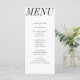 Det här unika svarta och vita bröllop-menykortet har fet typografi och elegant sans serif-teckensnitt för menyn bröllop. Perfekt för ett modernt bröllop eller något annat evenemang, bröllop med ett svartvitt färg eller elegant bröllop. På baksidan finns plats för datumet namn och bröllop - eller ta helt enkelt bort texten på baksidan. Det här objektet är en del av en bröllop-samling med fler matchande objekt.